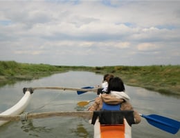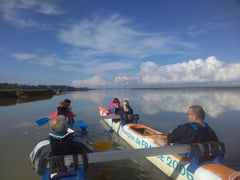 A bord d'un va'a, vous sillonnerez la Baie, au grès de la marée, en compagnie d'un guide qui assurera votre sécurité et vous livrera