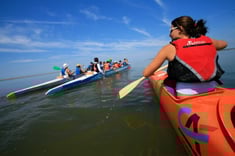"Partez découvrir le Flot, ce courant puissant créé par la montée des eaux. Certains jours de gros coefficient, on peut observer un spectacle rare: le Mascaret. Le Mascaret une vague créée par l’arrivée soudaine de la marée montante qui s’engouffre dans la baie par gros coefficient. Le retour se fera tranquillement en profitant du Flot qui nous aidera à regagner notre point de départ...."